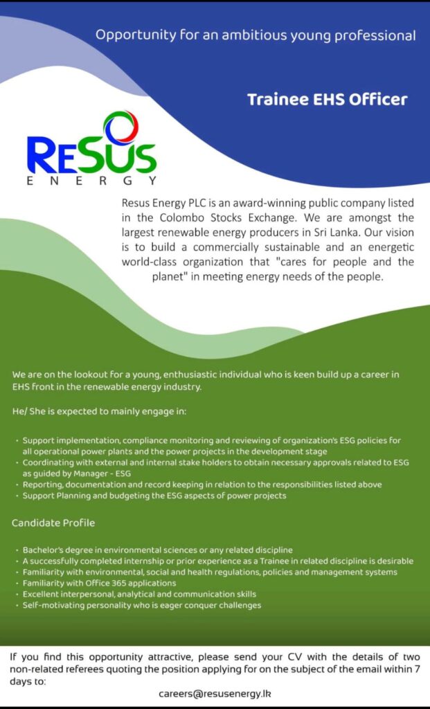 Kickstart your career with us! We have an exciting opportunity for a Trainee – ESH (Environment, Safety & Health) Officer based in Colombo, Western Province.