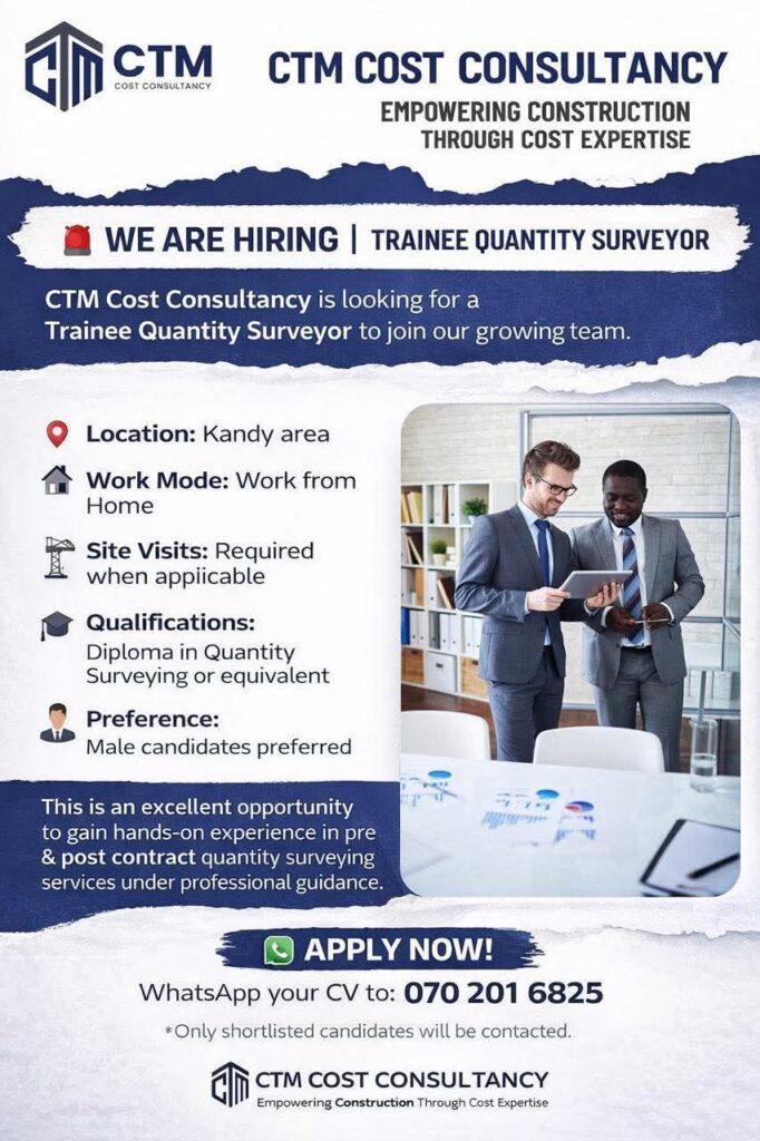 π¨ WE ARE HIRING | TRAINEE QUANTITY SURVEYOR π¨