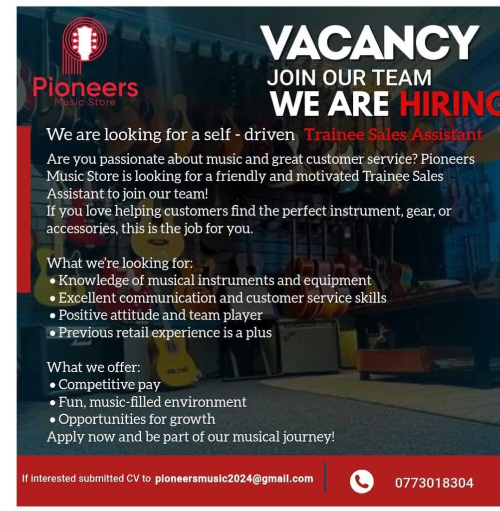 Pioneers Music Store is looking for a friendly and motivated Sales Assistant to join our team!