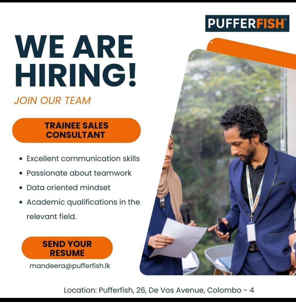 Email your CV to mandeera@pufferfish.lk