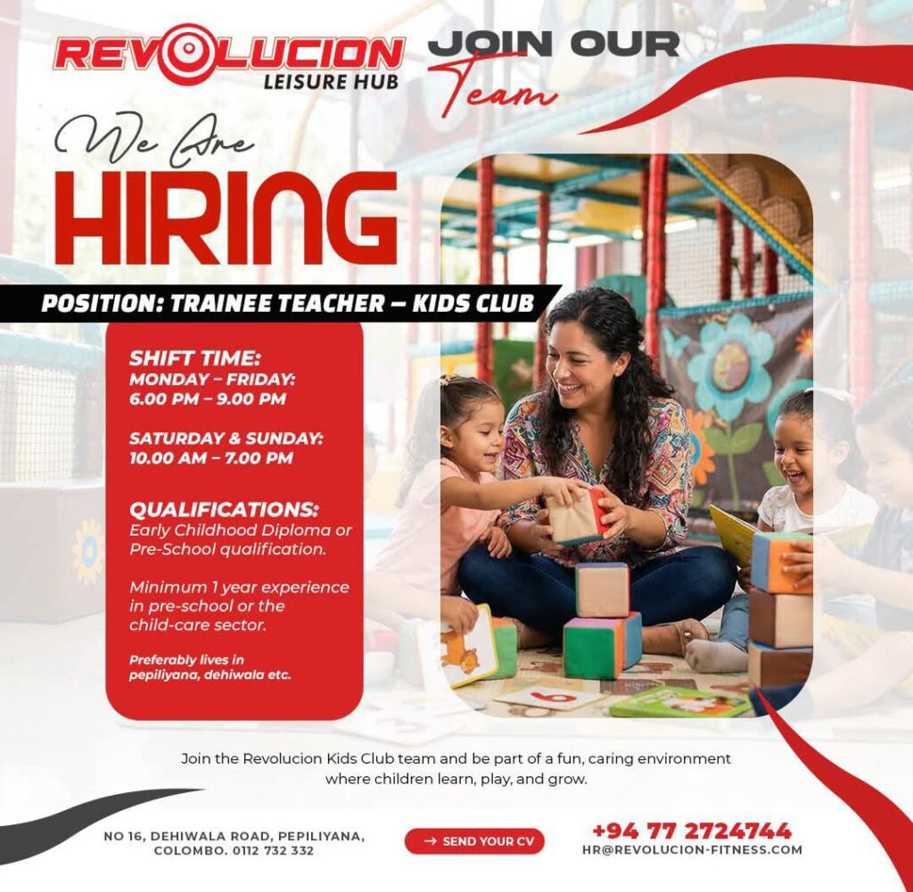 Revolucion – The most luxurious fitness destination in Sri Lanka is looking for a Trainee Teacher for it’s Kids Club who loves engaging with kids and helping them learn through play and creativity.