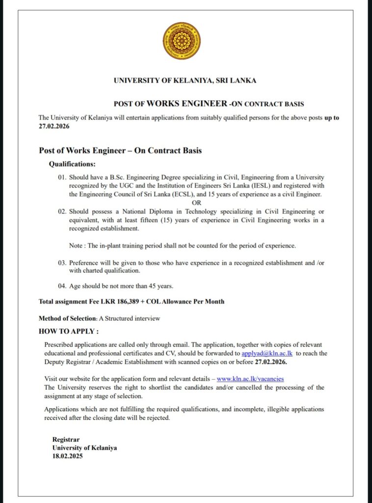 • B.Sc. Engineering (Civil) registered with ECSL/IESL + NDT (Civil) or equivalent